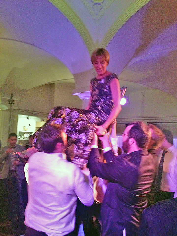 This post has gone on long enough, so I’ll skip the delightful reception, the delicious dinner, the toasts – though I have to mention the hoisting in chairs, which, is actually a lot of fun in a carnival ride type of way.