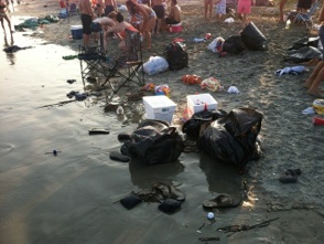 The [beach] bears [fewer] empty bottles, sandwich papers,