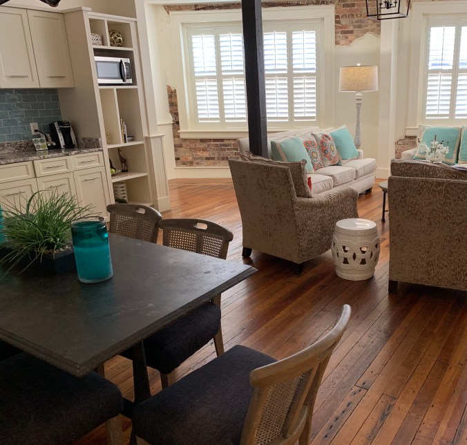 The Hotel Florence is lovely and well staffed, and I don’t know why this happens, but when Caroline checked us in, they bumped us up to a two-bedroom suite with a full kitchen and two full baths, shades of our honeymoon when we were bumped up to the Presidential Suite at the Grove Park Inn.  In both cases it was too much, appreciated, but under-utilized.