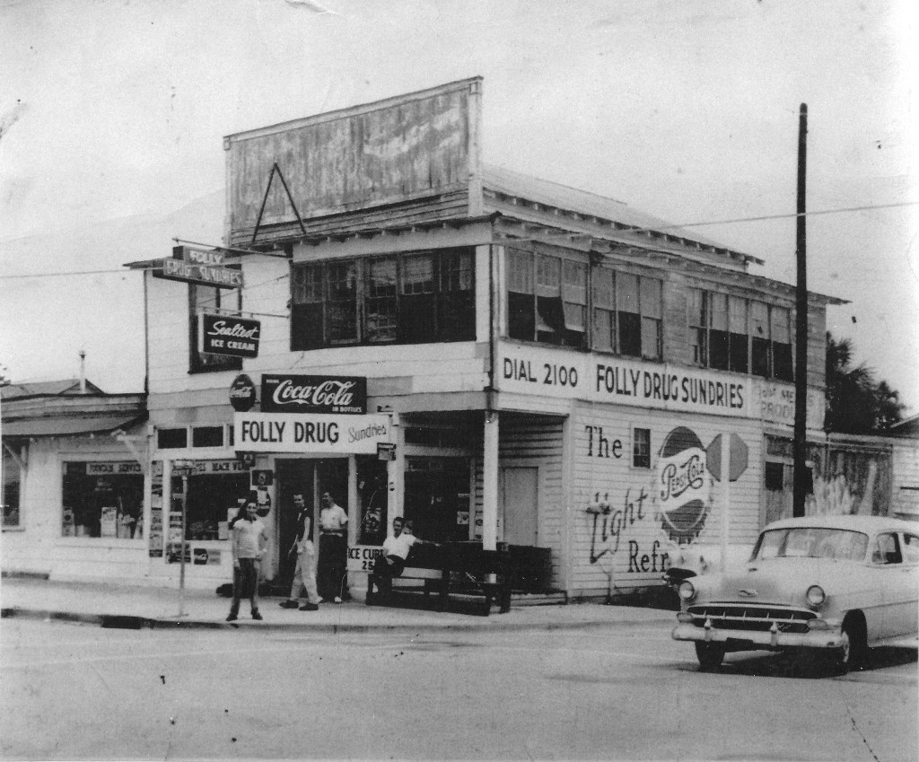 We’d ride our bikes on the sidewalks in front of Summerville Elementary (i.e., across the street from Beasley’s), past what then was the High School, continuing along the white wooden private school Pinewood and down the big hill in Azalea Park where the sidewalk snaked between two oak trees. Paul and I would pedal as fast as we could down the hill and negotiate the oaks like slalom skiers, then stand up pumping until we hit the commercial district[3].
