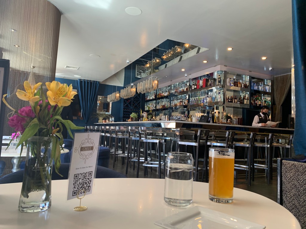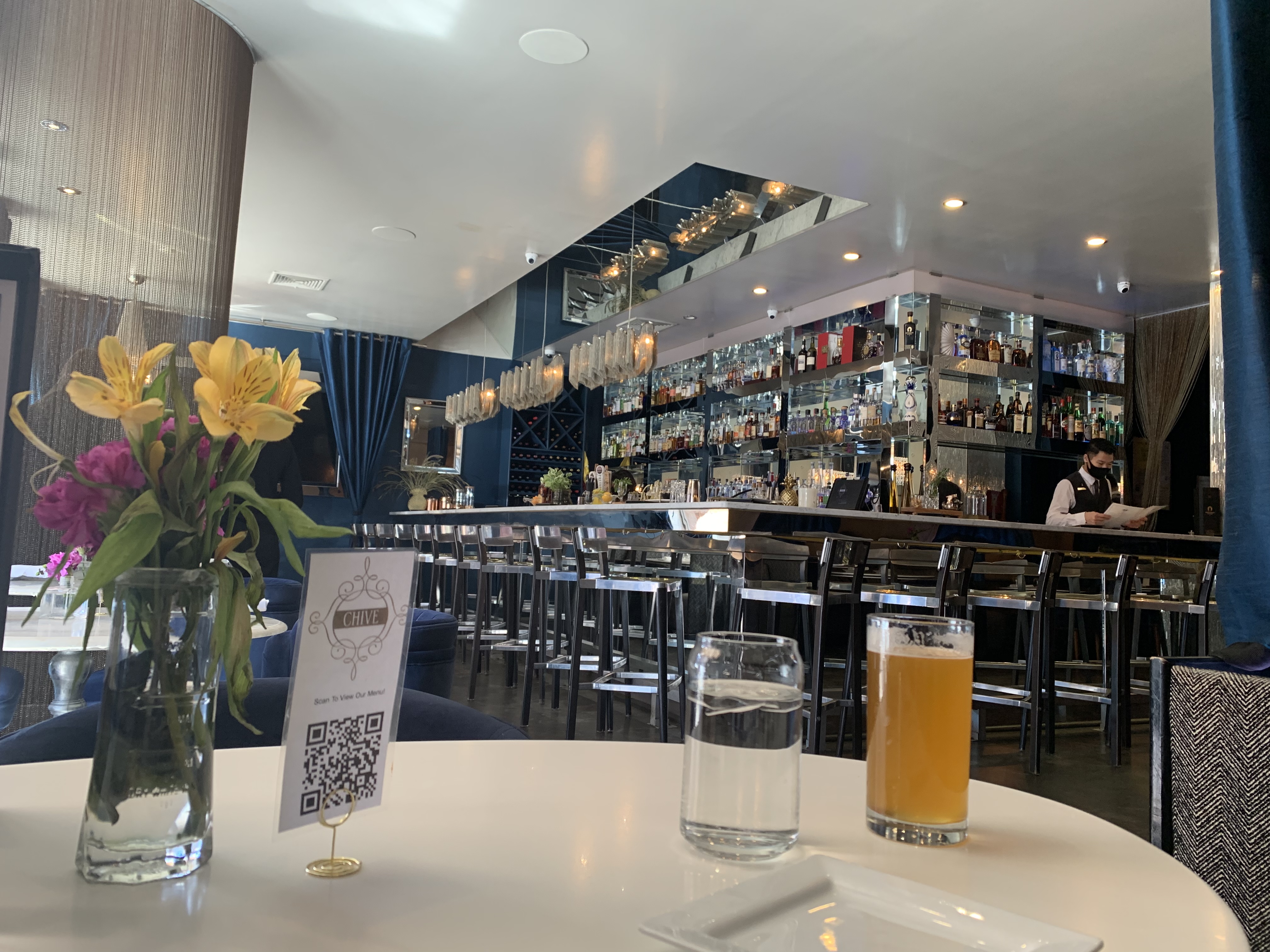 Even though what happened next might mislead the reader to consider the narrative a fictional account, just as my consort and I reached the door of Chive Seabar & Lounge, a masked woman of Asian heritage somersaulted the sign from closed to open, unsheathed the deadbolt and ushered us in to a corner table.