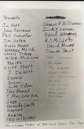 Here’s a list Jim compiled of the house’s residents, including girlfriends who spent multiple nights.