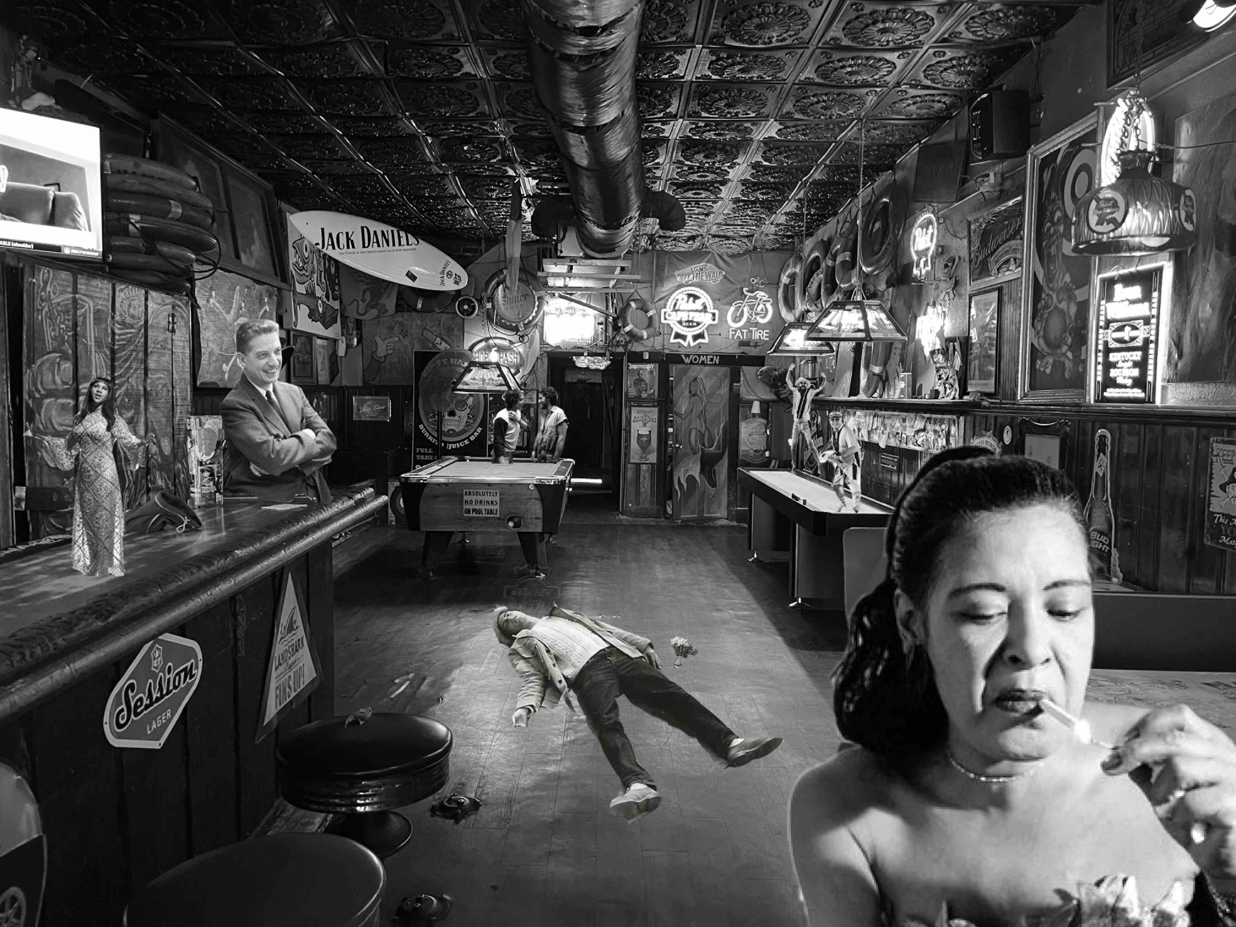 Well, this afternoon Chico Feo is giving off some heavy Huxley vibes. Workers off-the-clock loll in full self-expression, tattoos mapping their life histories in hieroglyphic fashion. A 21st Century version of a Pre-Raphaelite model, wan with auburn ringlets, sits across the bar from me hitting on her vape every now and then, vacant eyed but sort of beautiful in a retro-futuristic tawdry sort of way. I think she is what Aldous had in mind. Across the street at Berts you can buy blunts stuffed with Delta 8 and toke on them in public.