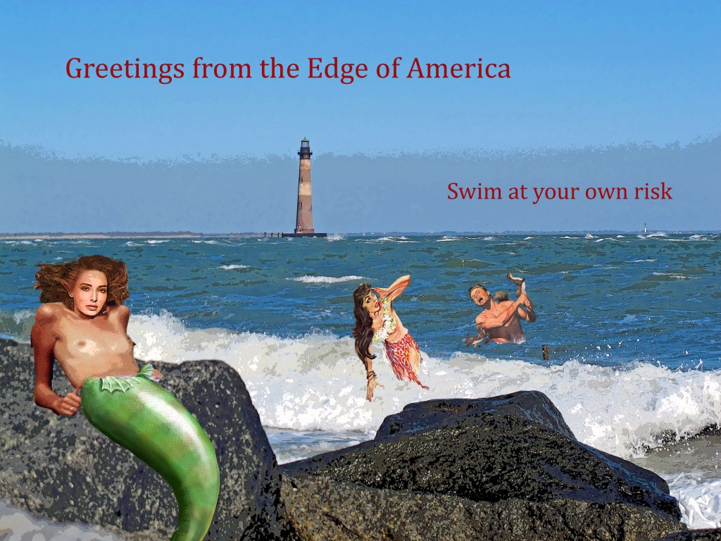 I’ve submitted this one minute video entitled Edge Connections for an art show in Charleston. If accepted it would play in a loop projected on one of the walls of the gallery. The audio would be provided by the curator. The theme is Folly Beach Noir, the Edge of America. Click on the box below to engage, even if it’s black.