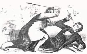 With what did Preston Brooks beat Charles Sumner?