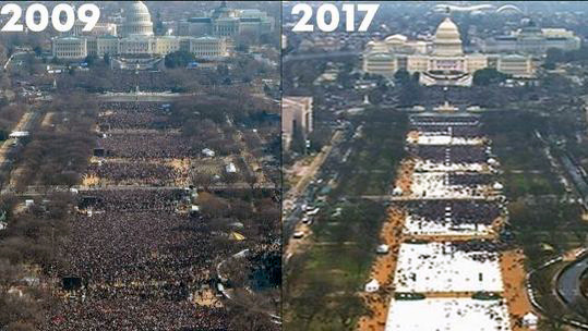 Looking out over the mall during the oath of office, Trump sees people as far as the eye can see. “Wow, this crowd is tremendous,” he thinks, “it’s got to be the biggest inauguration crowd in history.” After the ceremony, checking Twitter for rave revues of the ceremony, he runs across AP’s aerial photographic comparison of crowd sizes of his versus Obama’s 2008 inauguration. He claims subterfuge, the photos were doctored, etc. A tweet storm ensues.