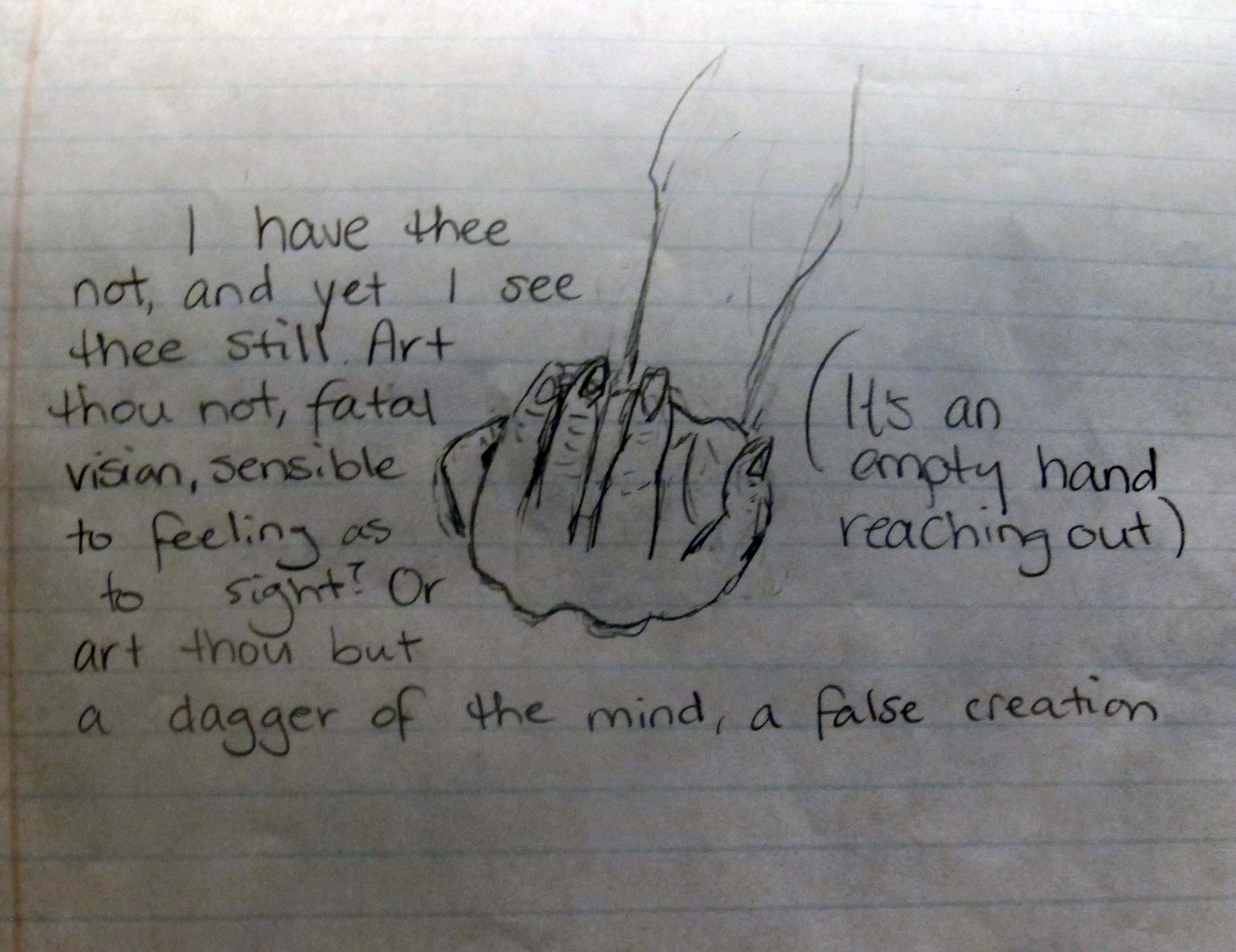 From there, I read Duncan’s “There’s no art/To find the mind’s construction in the face./He was gentleman on whom I built/An absolute trust.”